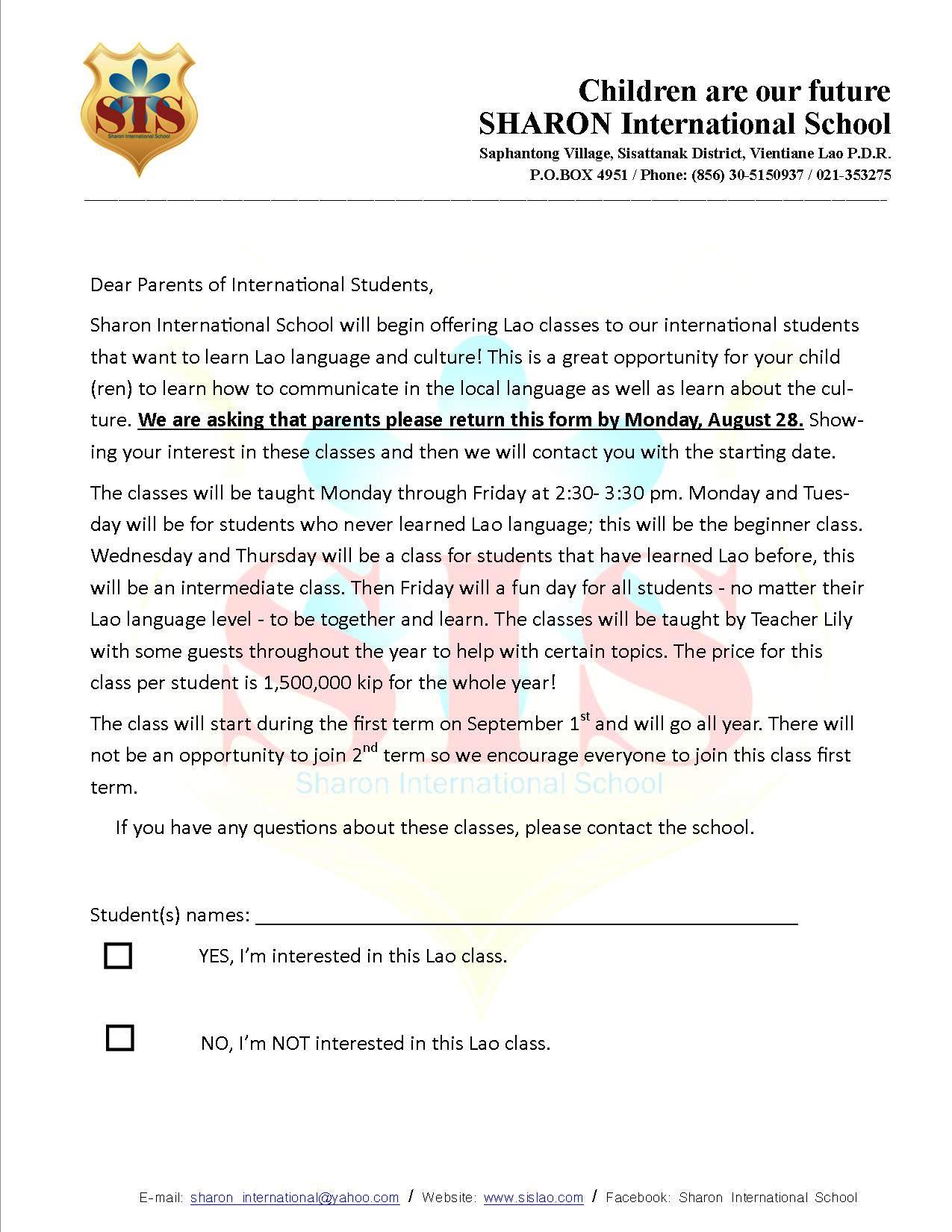 Hi to all the parents and families of Sharon International School students. We have had an exciting start to the year and are all on a successful track for a great year together.